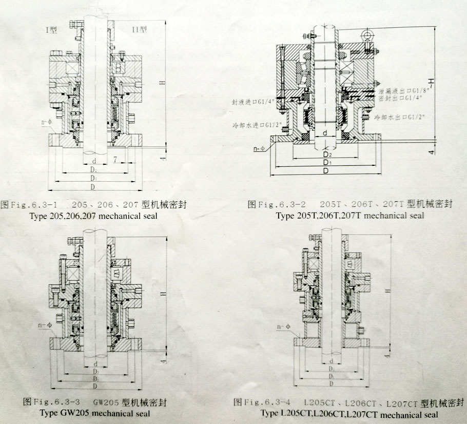 205T、206T、207T型是对上述对应机封的改进,其轴承改为两个圆锥滚子轴承,可代替机架的支承轴承室,也可制成整体轴结构,以利安装维修,并提高支撑刚度。