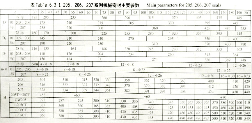 205,206,207系列机械密封